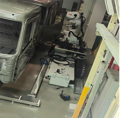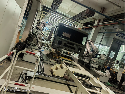 机器人执行系统:部署ABB机器人搭载3D胶枪与双定量缸,实现驾驶室内外焊缝全自动涂胶。